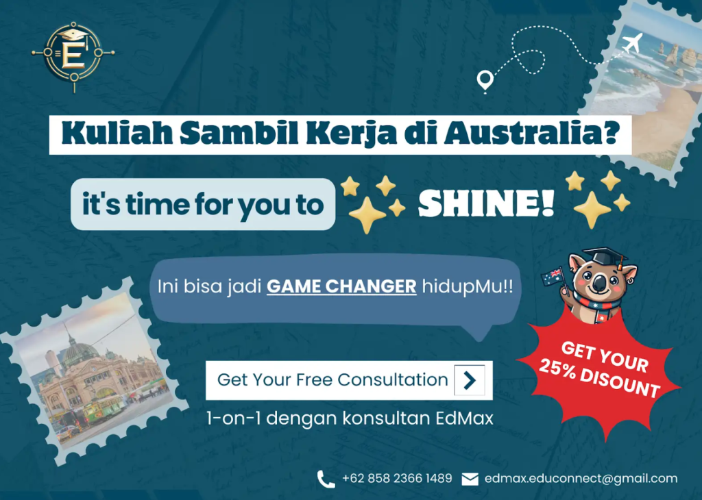 EdMax Connection merupakan mitra terpercaya yang membantu pelajar dan professional Indonesia meraih pendidikan dengan pendampingan penuh dari pemilihan jurusan, kampus, visa, hingga persiapan hidup dan karir di Australia.